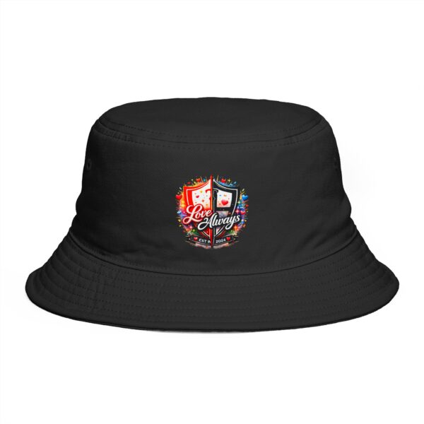 Bucket Hat — Colorful 'Love Always' Shield Logo Embroidered HatBucket Hat — Colorful ‘Love Always’ Shield Logo Embroidered Hat