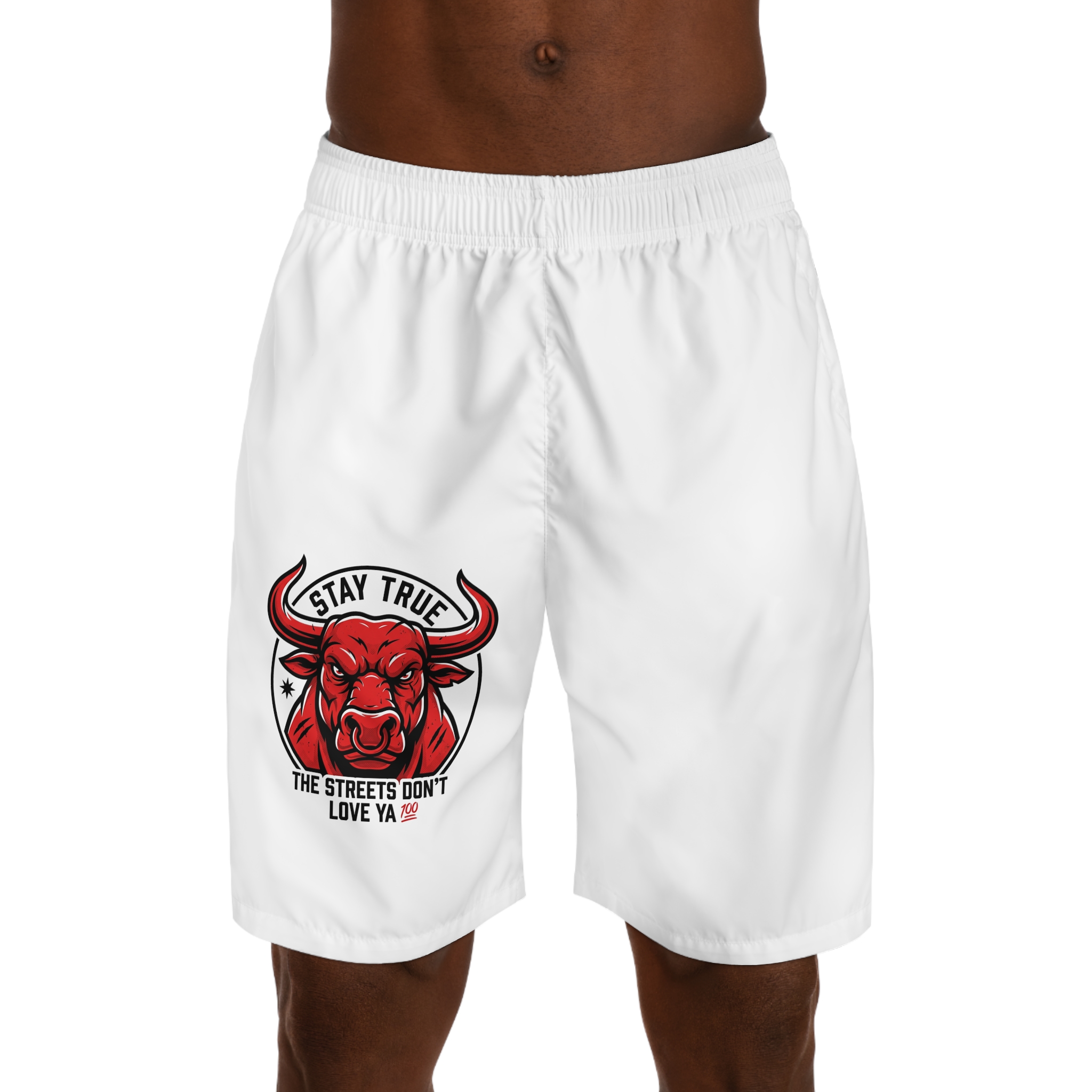 Bull Emblem Jogger Shorts — "Stay True: The Streets Don't Love Ya" GraphicBull Emblem Jogger Shorts — “Stay True: The Streets Don’t Love Ya” Graphic