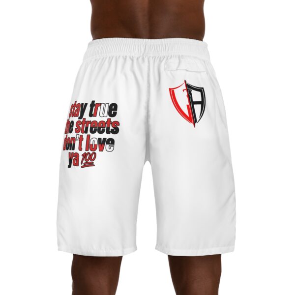 Bull Emblem Jogger Shorts — “Stay True: The Streets Don’t Love Ya” Graphic