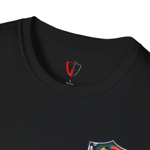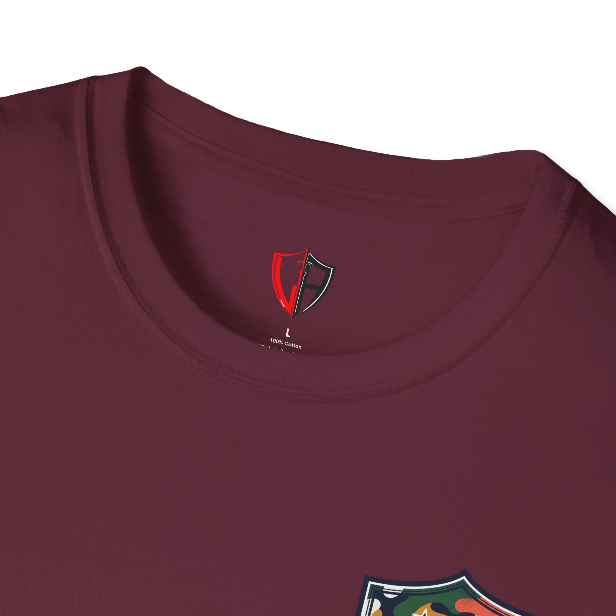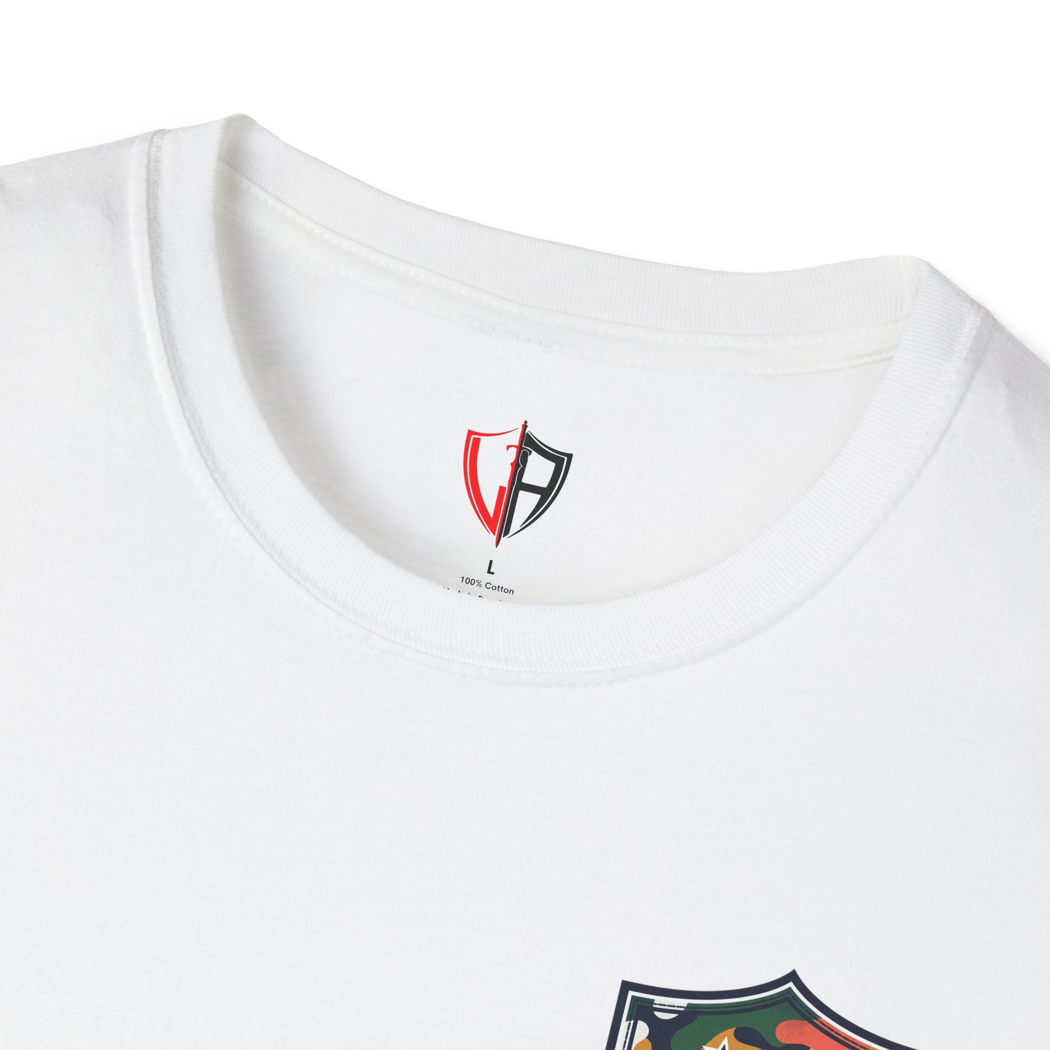 A lightweight, classic-fit tee that feels worn-in from the first wear. This crewneck features a small camo shield emblem on the chest and a larger matching badge across the back — a clean, outdoorsy look that reads casual and intentional. The soft, ring-spun cotton drapes comfortably and the ribbed collar and taped shoulders keep the shape after repeated wear. Wear it on trail days, weekend drives, or while layering under a flannel for an easy, lived-in vibe.