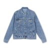 A lived-in denim jacket with a quiet, confident personality. The relaxed silhouette layers easily over tees or knitwear, while classic metal buttons and slanted front pockets keep the look practical and timeless. A flat lapel collar and button-flap chest pockets add vintage-inspired detail, and the back graphic gives the jacket an expressive, road-ready edge. Soft-but-durable cotton with a touch of stretch makes it comfortable for daily wear — the kind of jacket you reach for on brisk mornings, long drives, and evenings around an open fire.