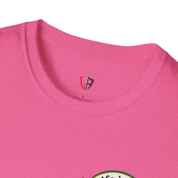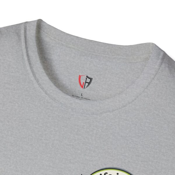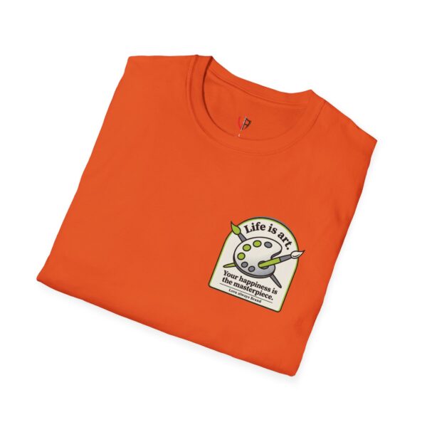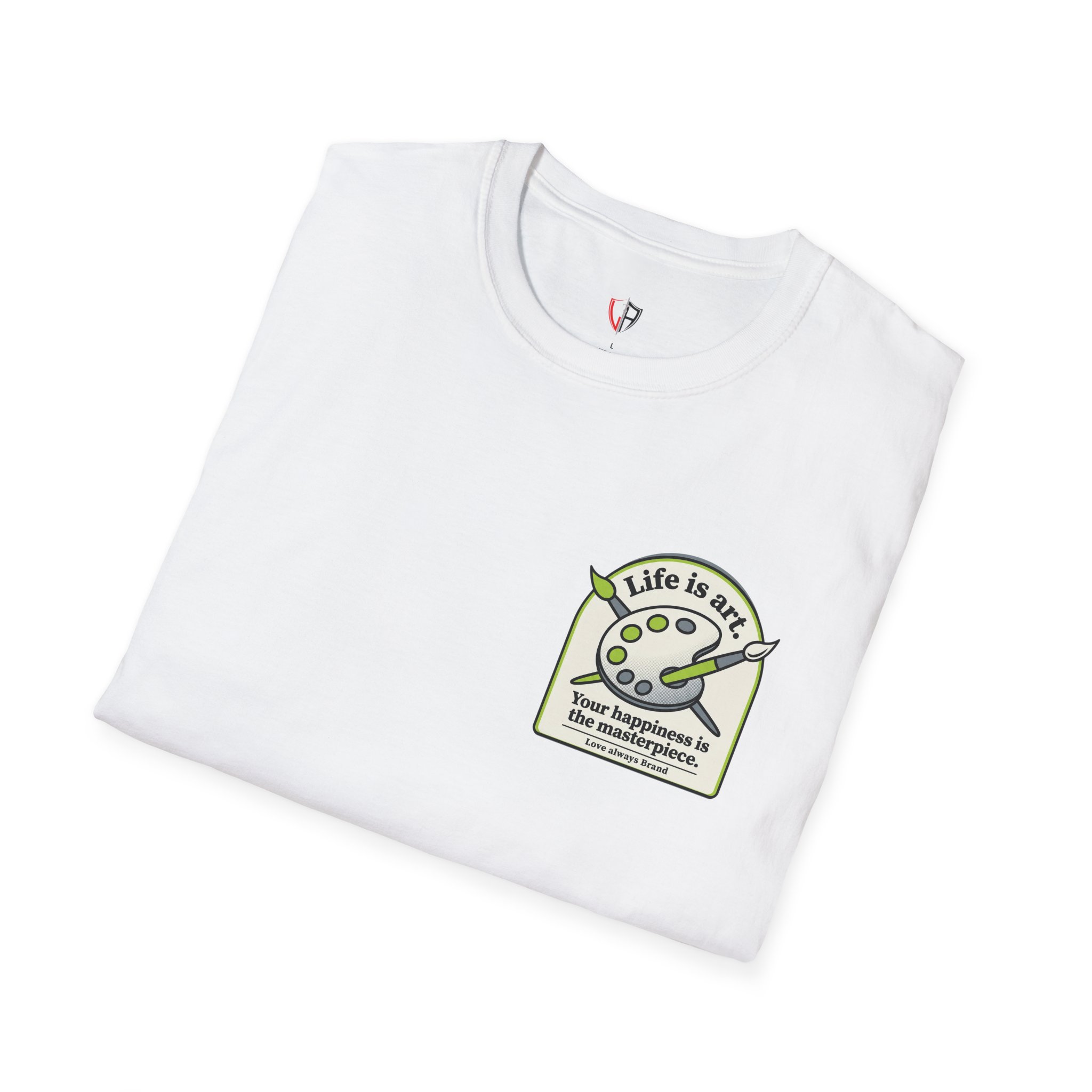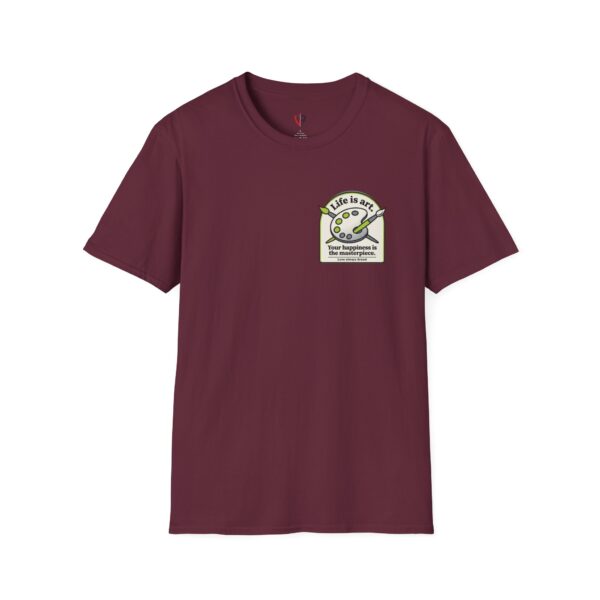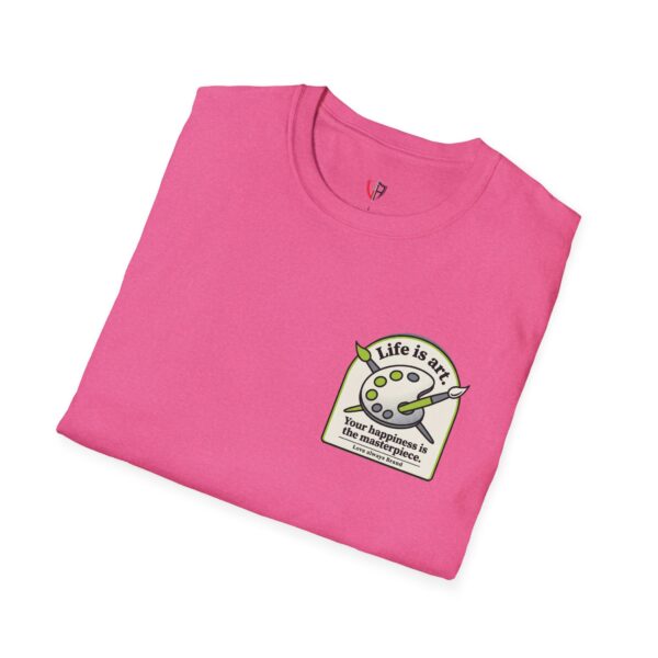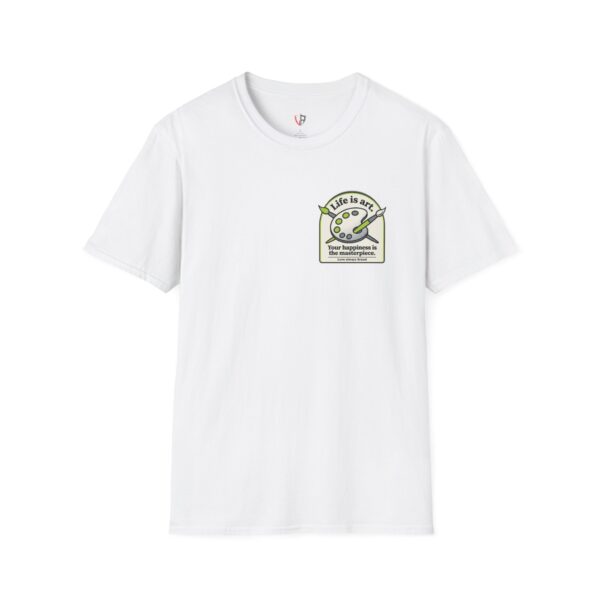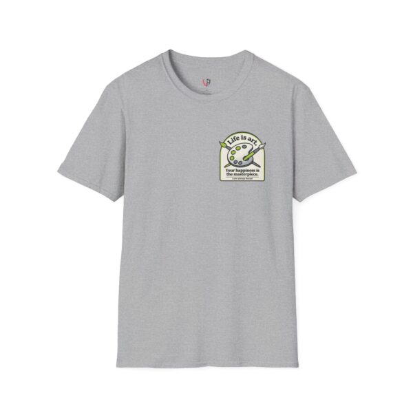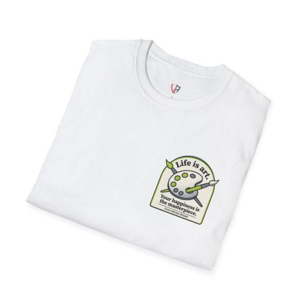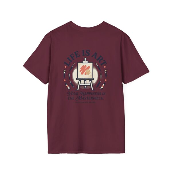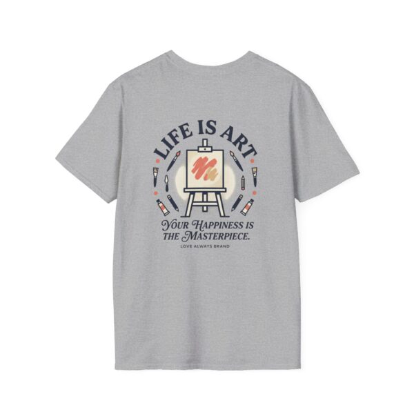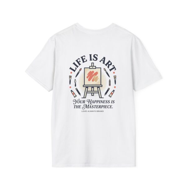 Soft, breathable, and lightly structured — this tee carries a gentle, artful message that settles like a friend’s reminder. A small chest patch nudges curiosity; the back opens into a relaxed, uplifting scene: an easel with a single bold brushstroke framed by tubes of paint and the words “LIFE IS ART.” It’s a quiet companion for studio mornings, gallery strolls, and slow weekends spent sketching or daydreaming. The fabric drapes cleanly, the crew neck holds its shape, and printed inner labels keep irritation away so the focus stays on making and savoring small creative moments.