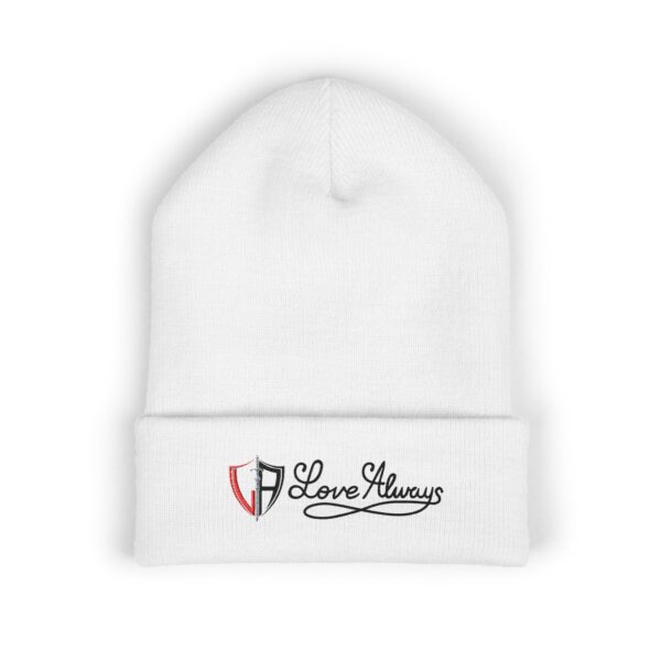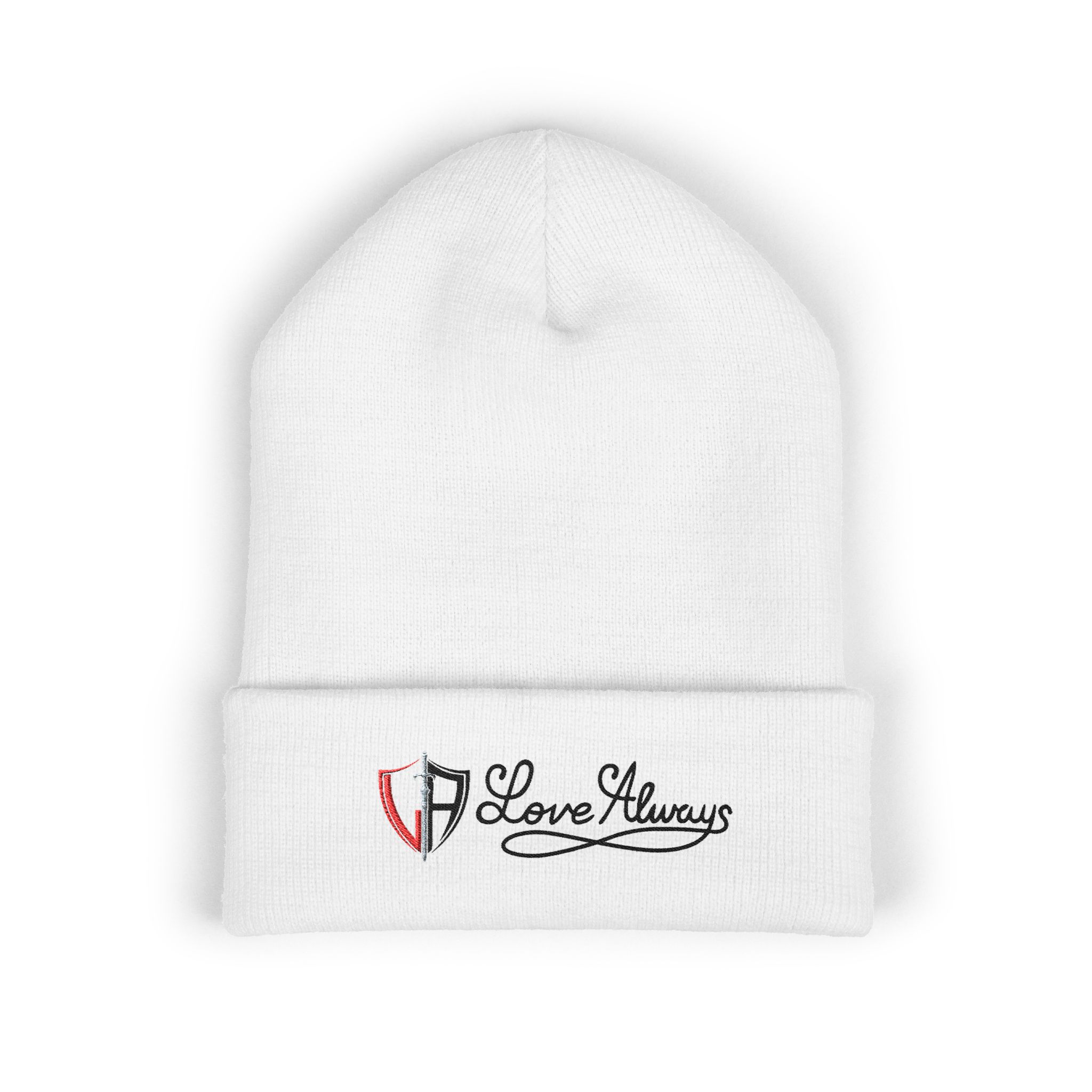 Soft, warm, and quietly expressive — this cuffed beanie carries a small, embroidered message that feels personal. The 12″ cuff folds snugly against your forehead, sheltering ears from wind while keeping a clean, tailored silhouette. The delicate stitched emblem and cursive “Love Always” whisper warmth without shouting; it’s the kind of everyday accessory that layers naturally with your coat, your commute, or an evening out. Lightweight but insulating, the hypoallergenic acrylic knit is kind to sensitive skin and stretches to fit, so it moves with you from quick errands to late-night walks. Wear it when you want to bring a gentle, handwritten sentiment into the world.