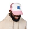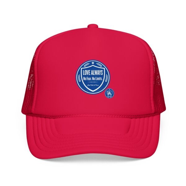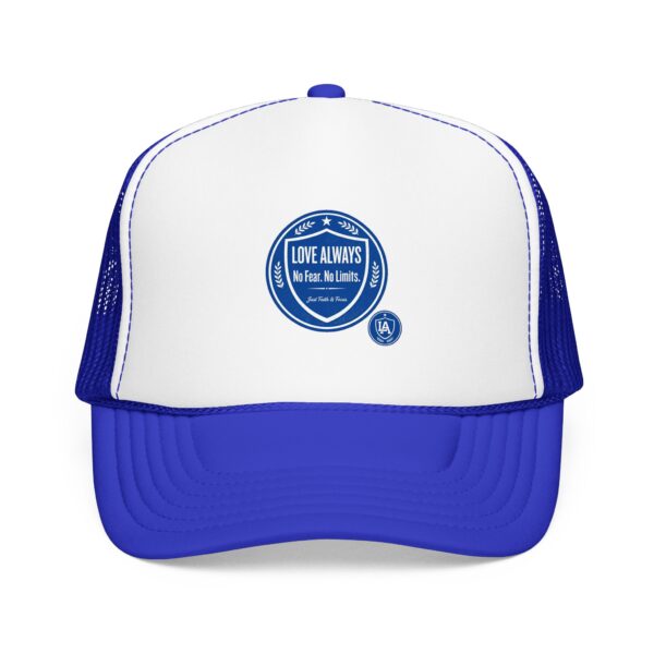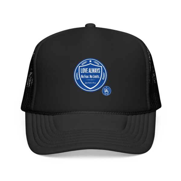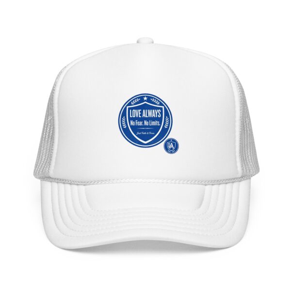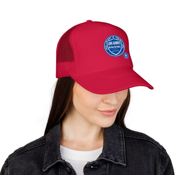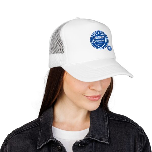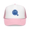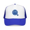 This foam trucker cap brings a casual, lived-in vibe to sunny mornings and late-night runs. The structured high-profile front holds its shape while the foam-backed panel and crisp embroidered badge give it a retro, well-worn authenticity. Mesh sides keep airflow moving when the day heats up. Wear it with a faded denim jacket or a crewneck sweatshirt — it slips into routines effortlessly, whether you’re grabbing coffee before a shift, chasing evening light for photos, or heading out to a low-key show. The understated seal on the front reads like a small declaration: quiet confidence, steady comfort, and a look that ages well.