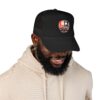 – Structured 5-panel, high-profile build with pre-curved visor