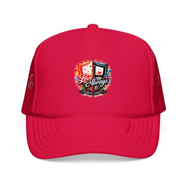 This foam trucker hat brings easy, lived-in attitude to your everyday gear. The high-profile, structured front panel holds its shape while the breathable mesh back keeps you cool when the day heats up. A seamless foam front showcases the colorful crest-style emblem — weathered edges and layered details give it that worn-in, road-ready look that slips effortlessly into skate sessions, festivals, and long drives. The adjustable snap lets you dial in a comfortable fit; matching braid and undervisor keep the look clean and cohesive. Wear it tilted back for relaxed mornings or pulled low for sunny afternoons — it’s built to be grabbed and worn again and again.