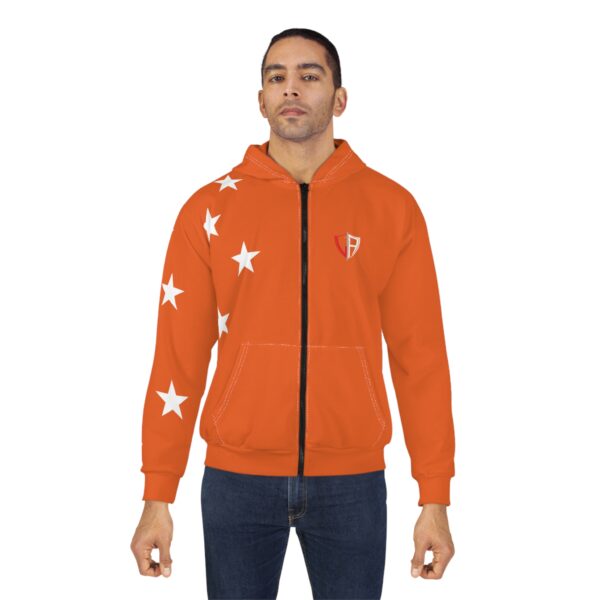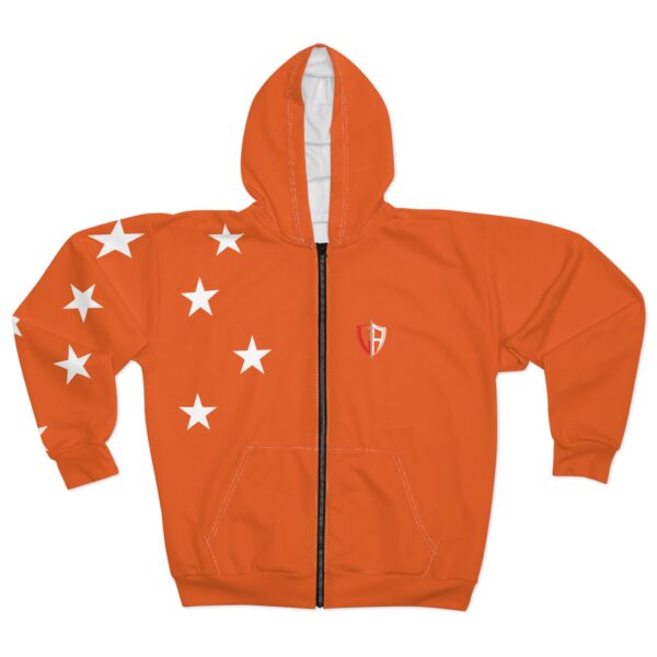 Orange Star Zip Hoodie — All-Over Print Casual Zip-Up