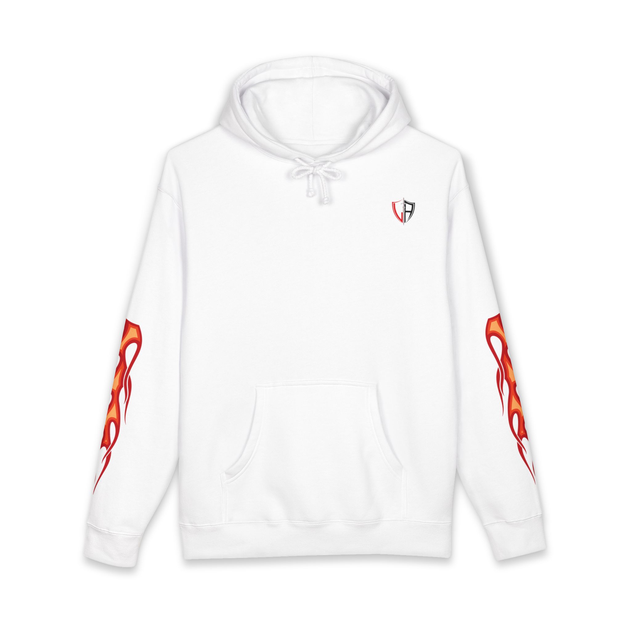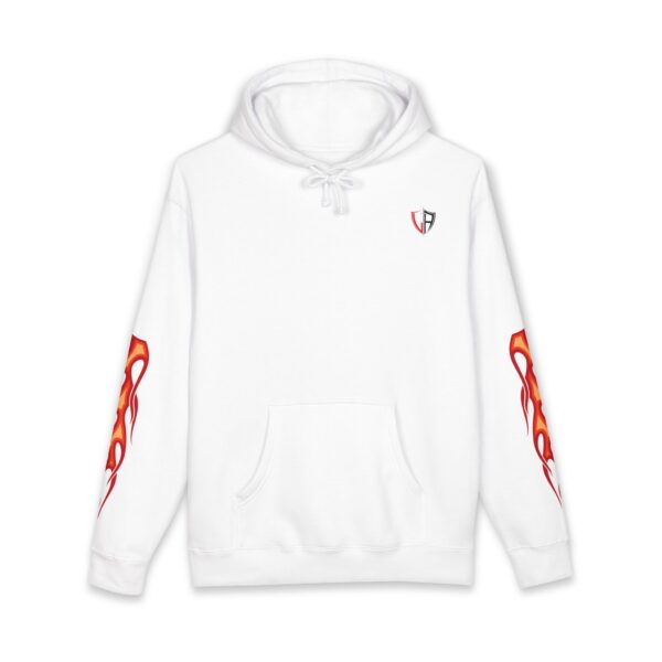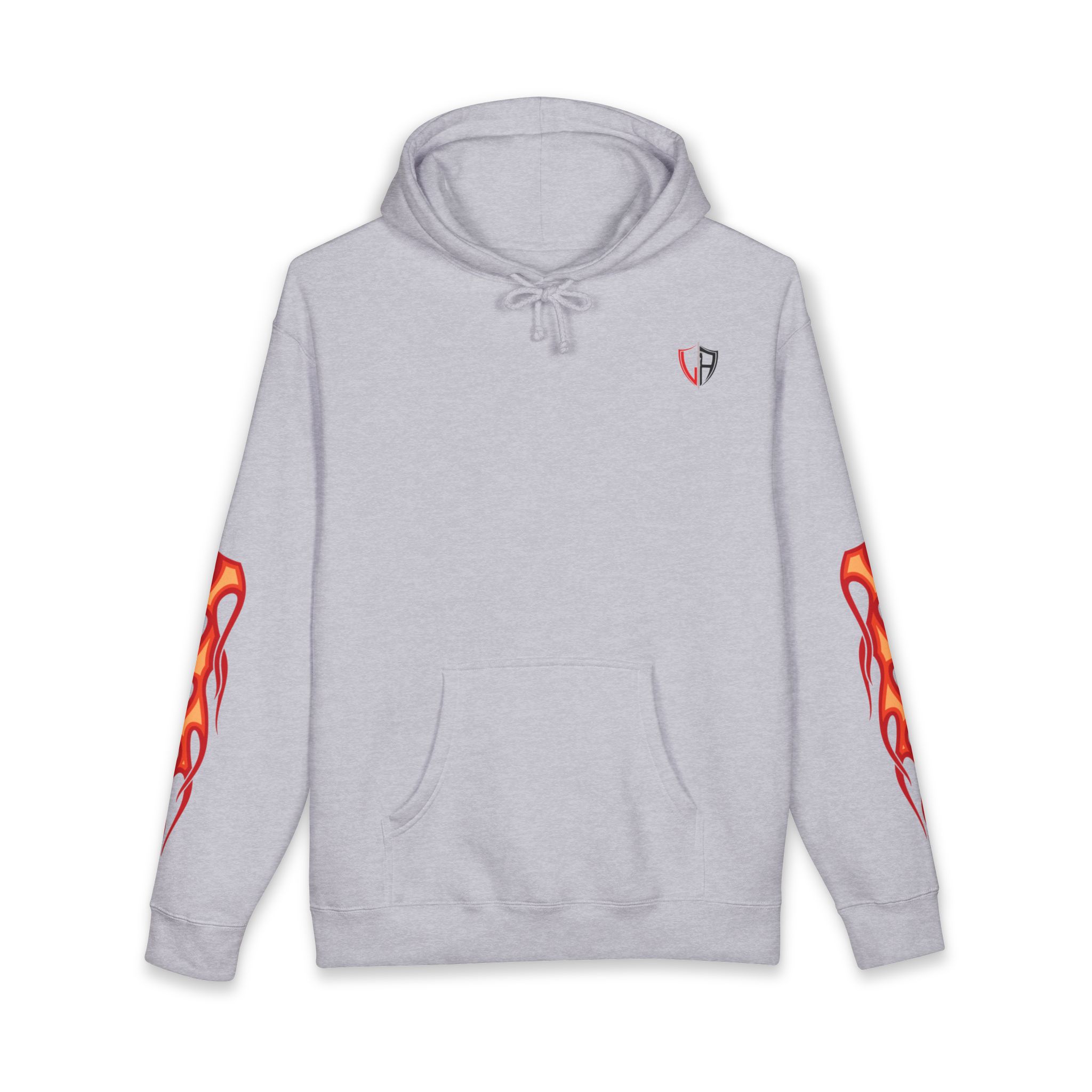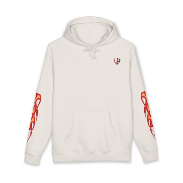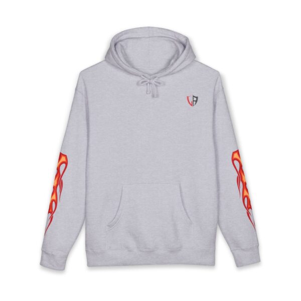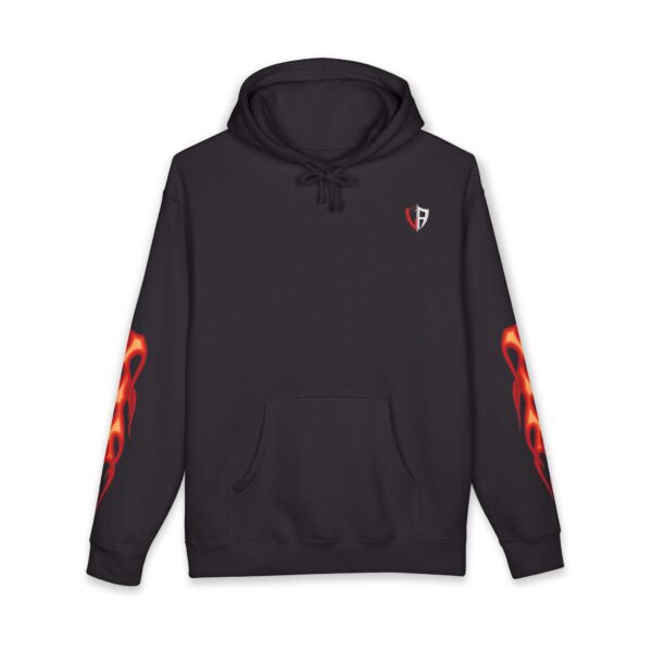 This heavyweight hoodie brings heat — literally and visually. The thick fleece-lined hood and sturdy 10 oz fabric wrap you in warmth, while flame motifs race down the sleeves and a dramatic phoenix-like crest blazes across the back. It feels like slipping into a warm, protective layer that still lets you show bold style. Wear it on cold nights at shows, on late rides, or when you want an edge while running errands. The relaxed fit lets you layer a tee or flannel underneath without losing shape. Small embroidered crest at the chest keeps the front clean so the back artwork can take center stage. Built with reinforced stitching and ribbed cuffs, it’s made to last through repeat wears and washes.