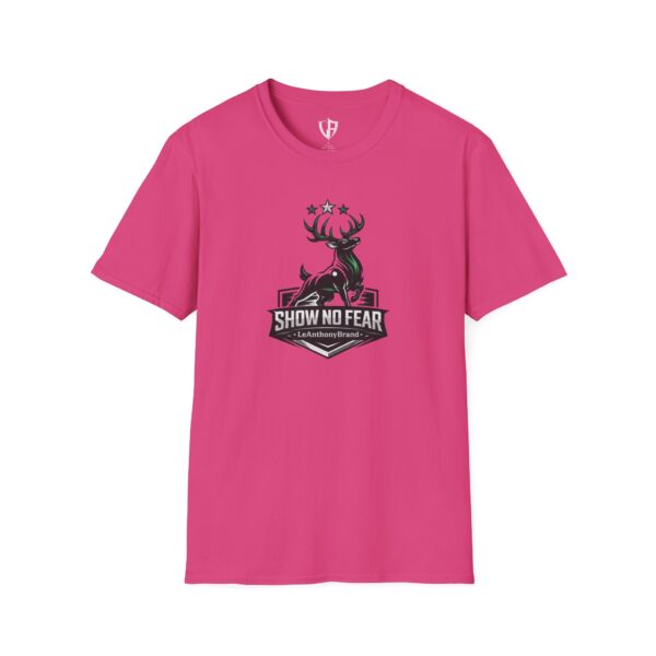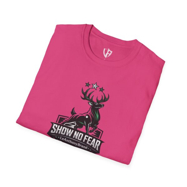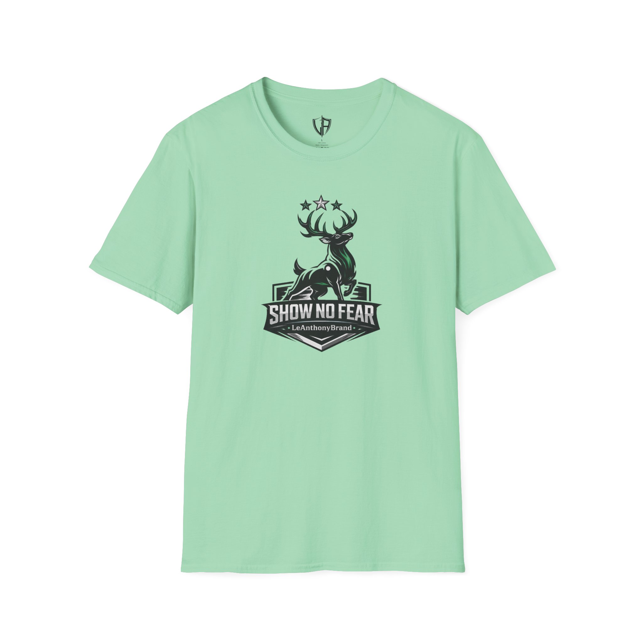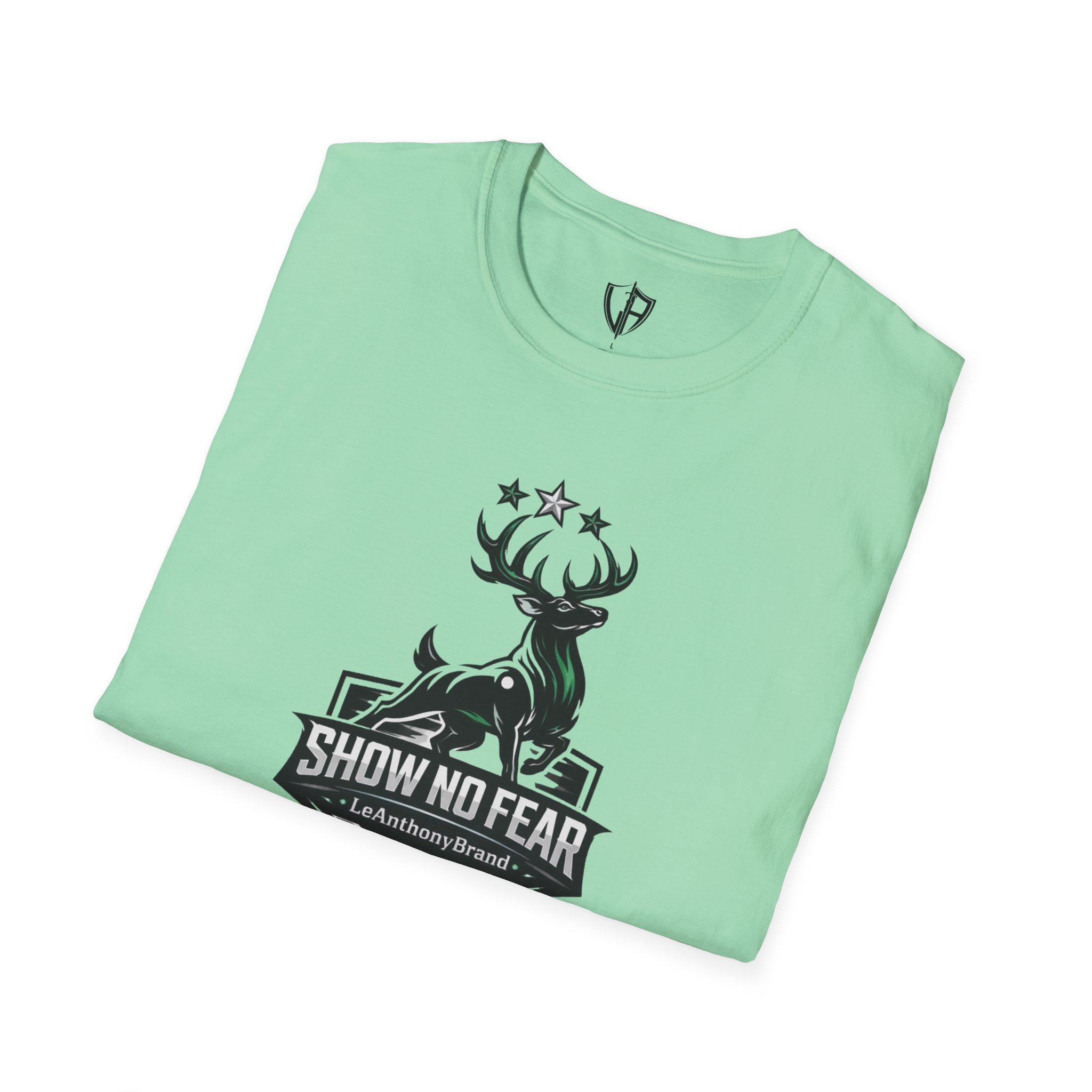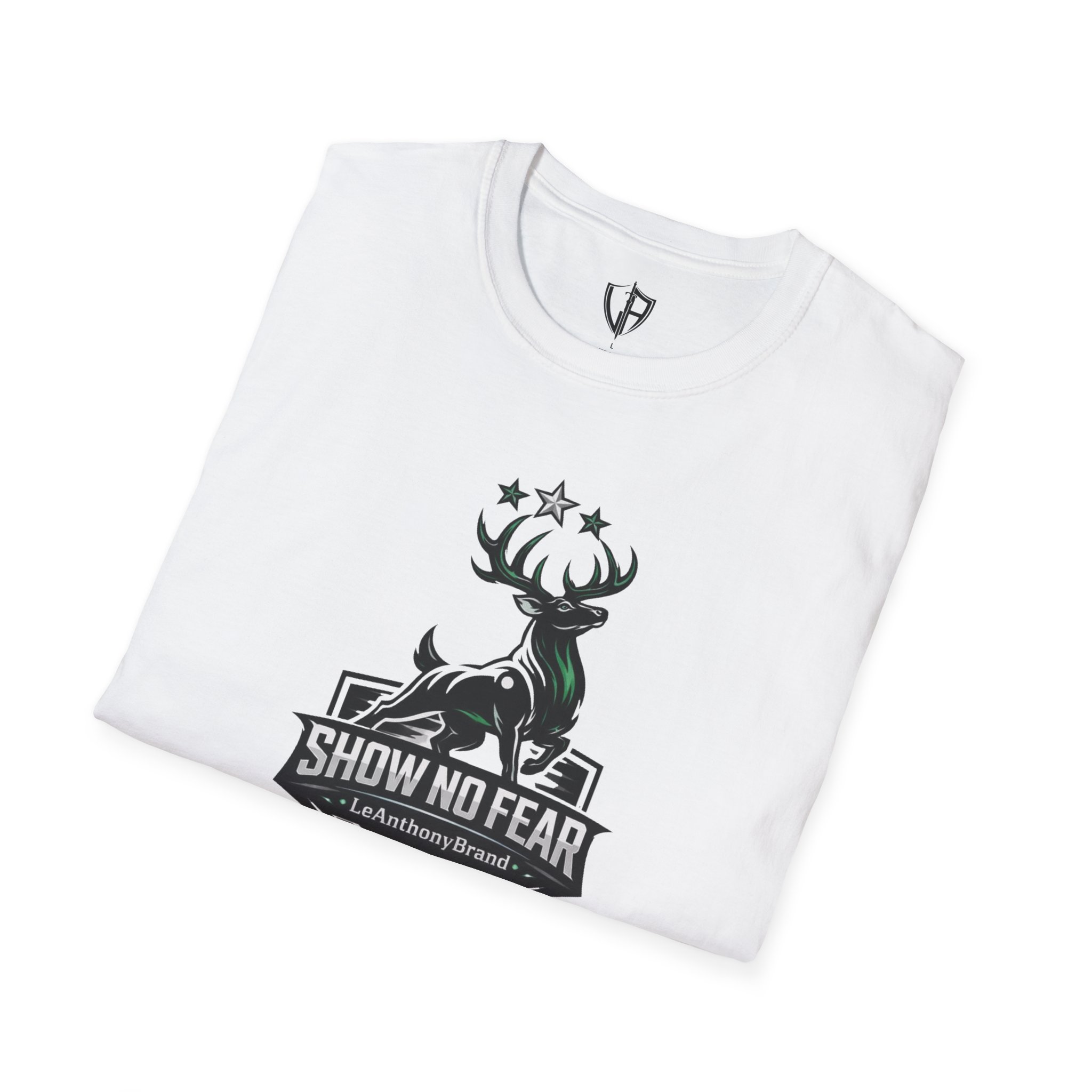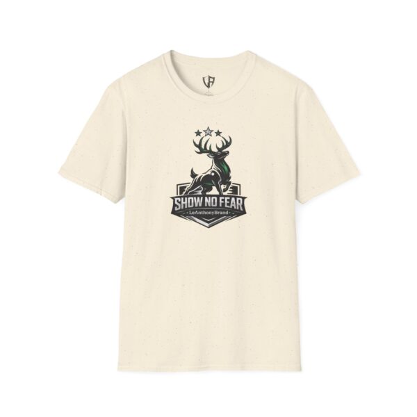 This lightweight cotton tee carries a bold outdoorsy badge — a stylized stag rising above a shield with the words “SHOW NO FEAR.” It wears like a reliable companion on early-morning trail runs, behind-the-wheel commutes, and easy evenings around a fire pit. The fabric breathes and moves with you; the classic crew neck and clean silhouette layer smoothly under jackets or stand on their own. Wear it when you want to feel steady, quietly confident, and a little rugged — the graphic speaks to grit without shouting.