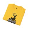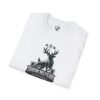 The image shows clean, high-contrast black artwork on a white shirt, giving the design a vintage-sports-meets-woodland vibe. It matches well with worn denim, canvas jackets, or a favorite flannel for cool nights. Built for regular use, the tee keeps its shape and print clarity after repeated wears and washes.