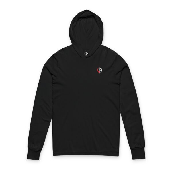 A slim, lived-in hooded long sleeve that wears like a favorite. Soft, lightweight cotton drapes close to the body while side seams keep the shape from stretching out. The front carries a small, subtle emblem; the back reveals a moody, detailed graphic — a skull cradled by a raven against a wash of deep red — that reads like a quiet statement. It’s made to move with you: easy to layer under a jacket or stand alone on cool evenings. Bring it on late-night walks, music runs, or evenings around a fire when you want clothing that feels personal and a little bit fierce.