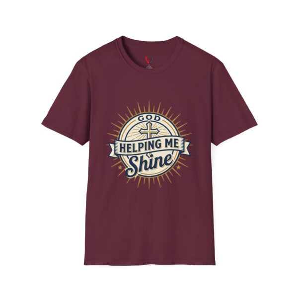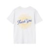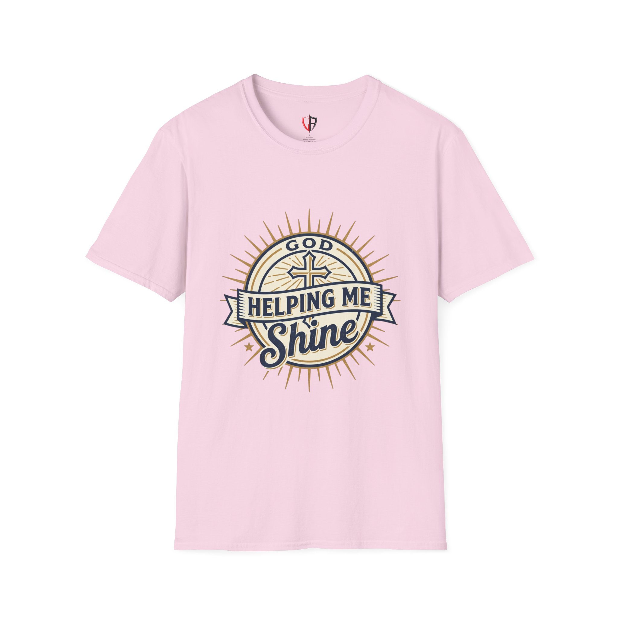 A soft, breathable tee printed with a warm, faith-forward design that feels like a quiet morning of gratitude. The front features a vintage-inspired emblem with a cross and sunburst declaring “Helping Me Shine,” while the back carries a radiant “Thank You” surrounded by golden rays. Lightweight ring-spun cotton and a classic crew cut make this shirt easy to layer or wear on its own. It sits comfortably at the shoulders and keeps its shape thanks to ribbed trim and shoulder taping, so the message stays neat through repeated wear. Wear it to church gatherings, volunteer days, or low-key moments when you want your gratitude to be seen without saying a word.