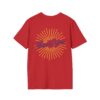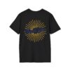 – DTG/DTF printed graphics with vibrant sunburst front and back designs