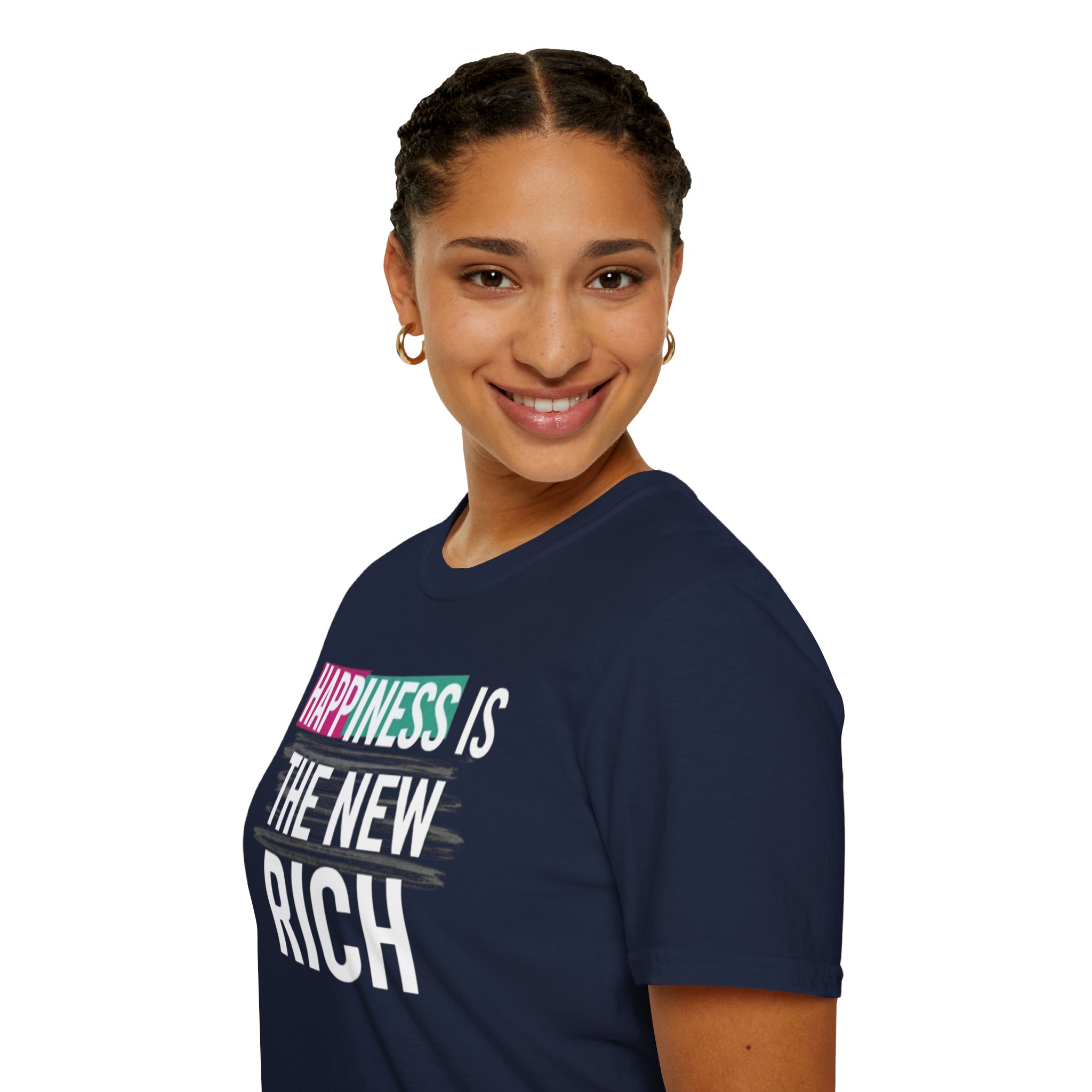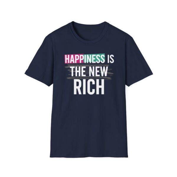 Embrace positivity and wear your beliefs proudly with this stylish unisex t-shirt. Featuring the empowering slogan “Happiness is the New Rich,” this shirt captures a vibrant outlook on life and is perfect for those who value joy above material wealth. Its classic fit and comfortable feel make it versatile for any occasion, whether you’re dressing up for a casual gathering or lounging at home. Ideal for friends, family, and anyone looking to spread a message of happiness, this tee is a great gift for birthdays, holidays, or as a special treat for yourself. Celebrate life’s simple pleasures during any occasion, from festive celebrations to everyday adventures.